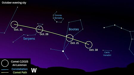 Komet Lemmon se še vedno približuje in postaja svetlejši, saj bo najbližje Zemlji 21. oktobra, najbližje Soncu pa 8. novembra.